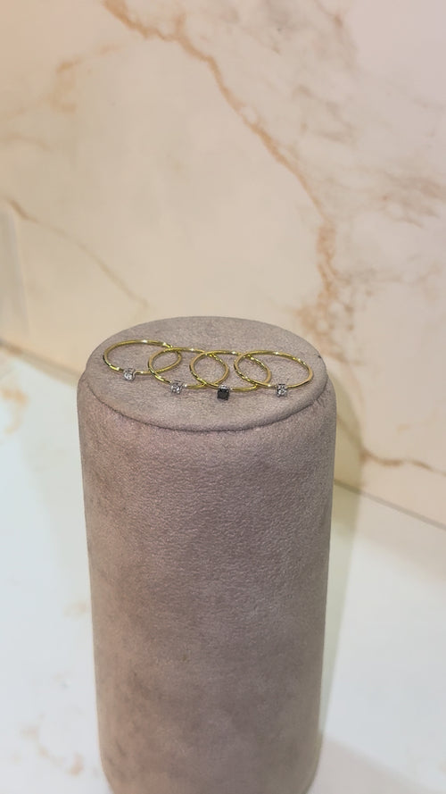 Tre microsolitari brillanti bianchi e uno nero 0,3 ct
