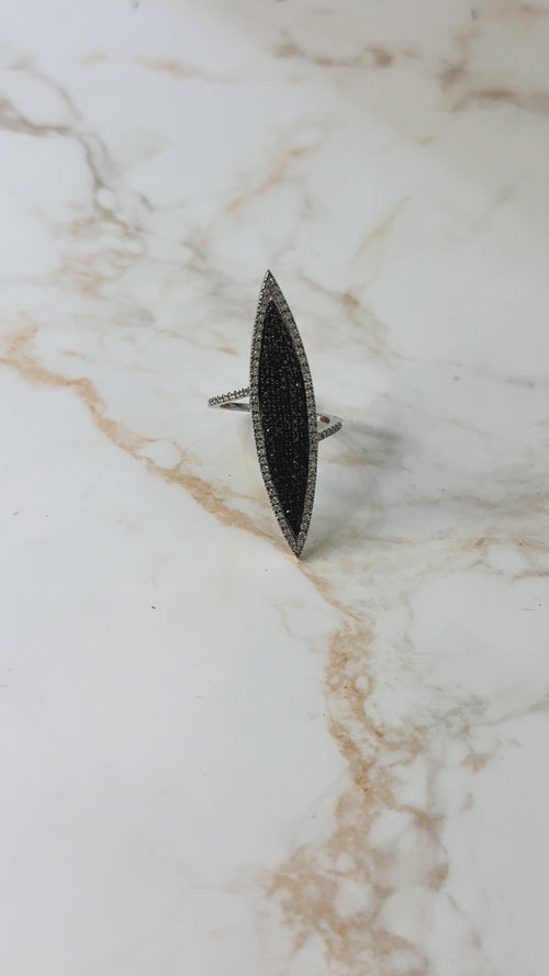 Anello spoletta, oro bianco 18 carati tempestato noi diamanti black & white