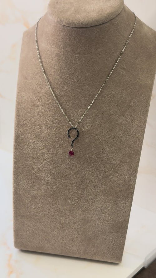 Oro bianco - diamanti neri 0,10 ct e rubino 0,20 ct